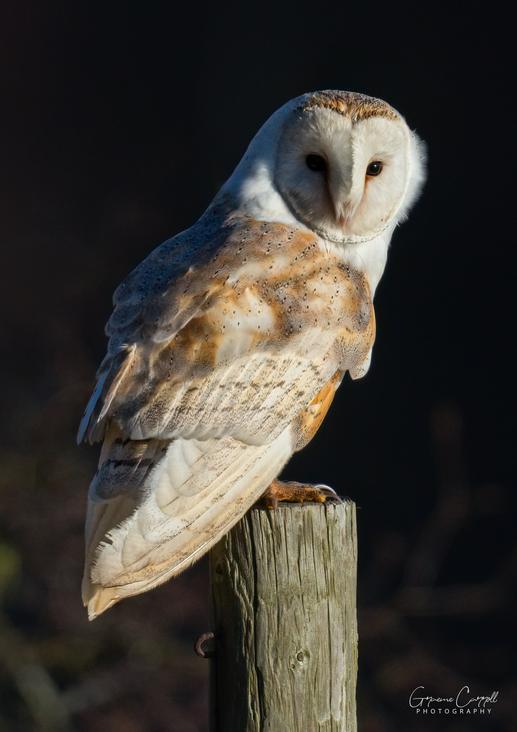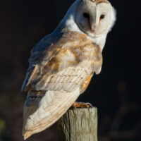 Barn Owl on a post in early morning sunlight Image taken in Weardale, County Durham
